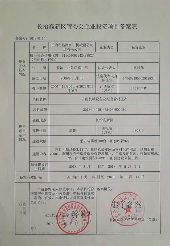 關(guān)于“長治市昌路礦山機械設(shè)備制造有限公司礦山機械設(shè)備及配套管材生產(chǎn)項目”環(huán)境影響報告表的批復(fù)